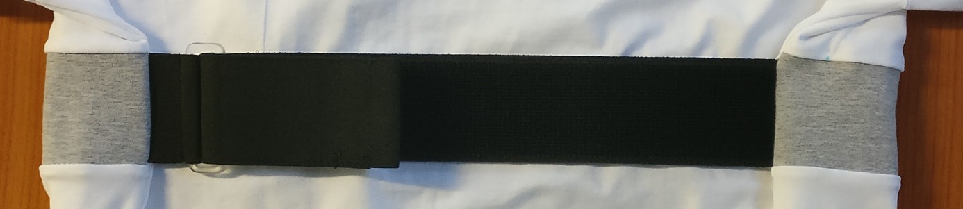 The need to use these garments on people with different sizes and the need for the fabric sensors to be placed in tight connection with the user's thorax, has required the introduction of a Velcro strap on the back side of the shirt. In this way the nurse can fix the strap with sensors and adapt the vest to the end-user's thorax circumference at the moment of system delivery, and then the user can doff and don again the garment using the zip maintaining the adherence to his/her body.